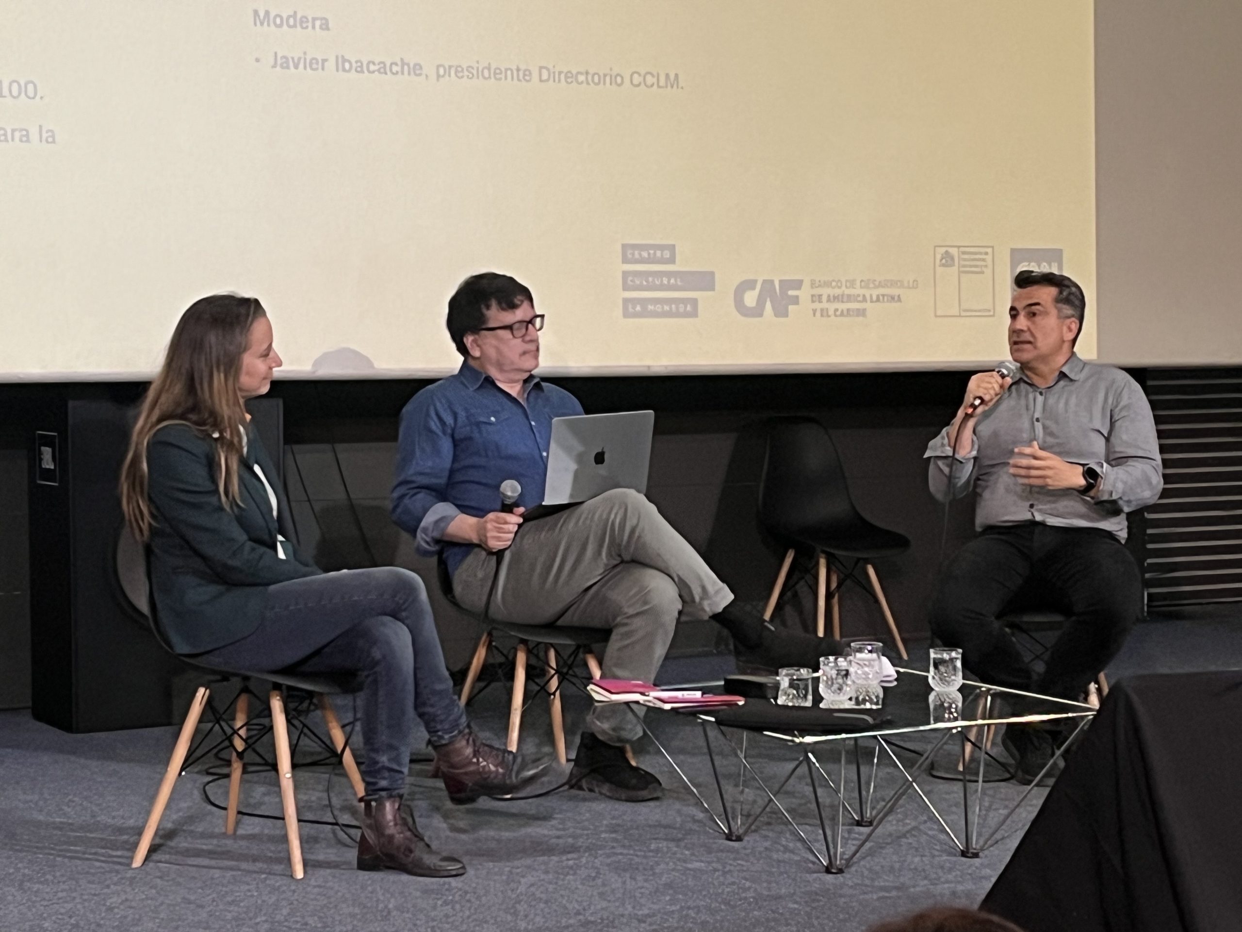 Moderado por el Presidente del Directorio del CCLM Javier Ibacache, se sumaron al panel Alejandra Martí, Directora Ejecutiva de GAM; e Isidora Cabezón, Directora Ejecutiva del Centro para la Revolución Tecnológica en Industrias Creativas.